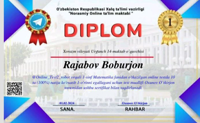 • Xorazm viloyati, Hazorasp tumani Muxomon qishlog'i, Navro'z mahallasi, Ta'lim ko'chasi 55-uy