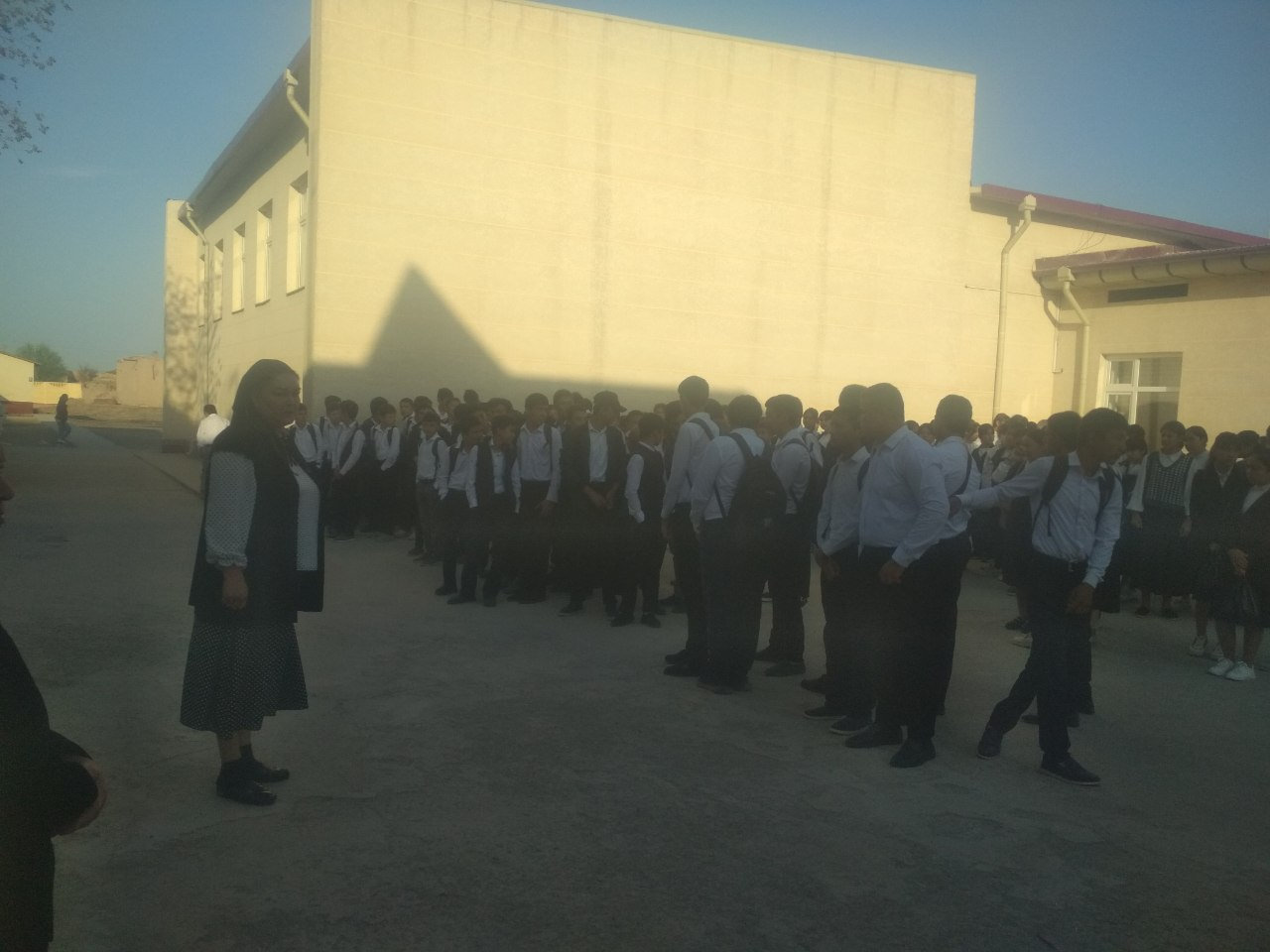 Hazorasp tuman Maktabgacha va maktab ta`limi bo`limiga qarashli 14-umumiy o`rta ta`lim maktabining ertalabki saflanish jarayonlaridan lavhalar.