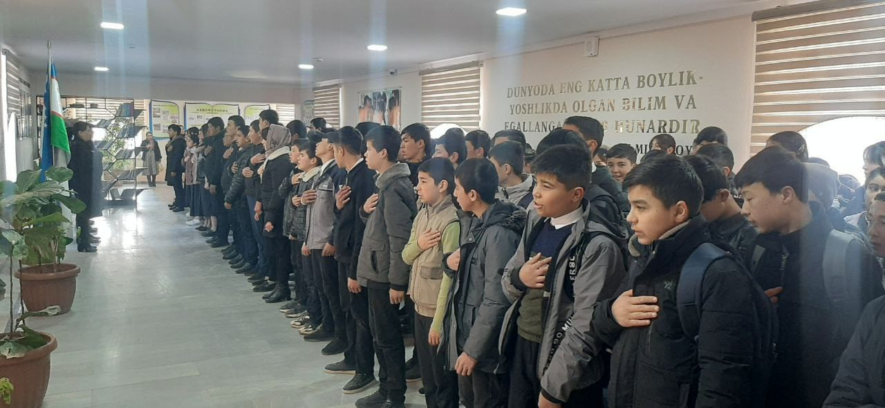 Xorazm viloyati Hazorasp tumanidagi 14 -son umumiy oʻrta taʼlim maktabida 2024- yil 2- mart kuni oʻtkazilgan ertalabki saflanish va " Oʻzbekiston Respublikasi davlat madhiyasi" ni kuylash jarayonidan video va fotolavhalar