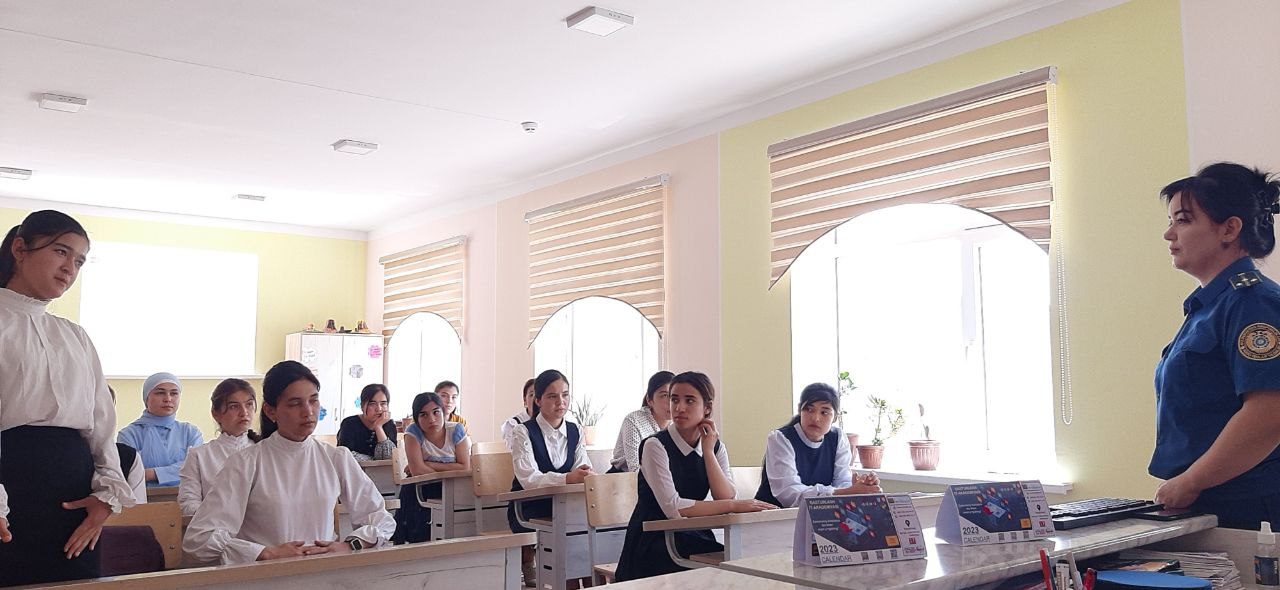 Hazorasp tuman maktabgacha va maktab ta`limi bo`limiga qarashli 14-umumiy o`rta ta`lim maktabiga 2023-yil 24-may kuni Hazorasp tuman IIB JXX HPB XQMB katta inspektori katta leytenant Qurbonova Anapashsha va maktab o`quvchilari ishtirokida O`zbekiston Respublikasining 2023-yil 11-apreldagi 829-sonli qonuni "Xotin-qizlar va bolalar huquqlari,erkinliklari hamda qonuniy manfaatlarini ishonchli himoya qilish to`g`risida "tushuntirish ishlari olib borildi.
