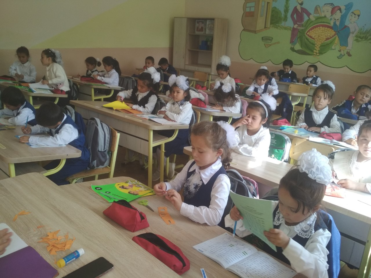 Hazorasp tuman Maktabgacha va maktab ta`limi bo`limiga qarashli 14-umumiy o`rta ta`lim maktabining texnologiya fani o`qituvchisi Do`schanova Nazokat Baltayevnaning 1-D sinfda "Quyoncha yasash"dars jarayonlaridan lavhalar.