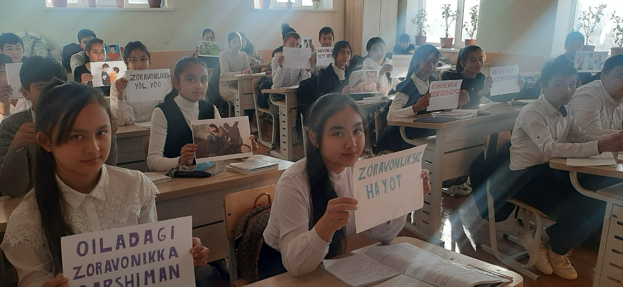 Aksiya so'nggida o'quvchilar o'z qo'llari bilan zo'ravonlikni aks ettiruvchi rasmlar chizdilar.