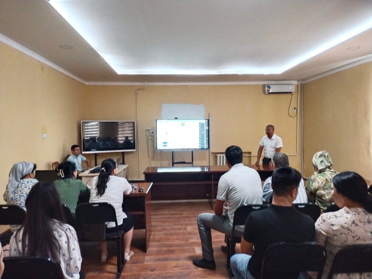 Hazorasp tuman Maktabgacha va maktab ta`limi bo`limi majlislar zalida bugun 2023-yil 5-iyul kuni "Raqamli iqtisodiyotni rivojlantirish markazi"mutahassislari U.Aminboyev va S.Ernazarovlar hamda tumannning barcha Axborot-kommunikatsiya vositalari,elektron hukumat tizimlari va idoralararo yagona elektron tizimlarini yuritib kelayotgan barcha kadrlar ishtirok qildilar.