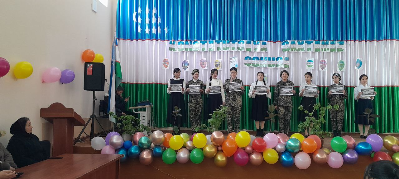 Hazorasp tumanidagi 14-son umumiy o'rta ta'lim maktabining Huquq va Tarbiya fani o'qituvchisi Jumanazarova Irodaning Konstitutsiyamizning 31yilligiga bag'ishlab o'tkazgan "Konstitutsiya -baxtimiz qomusi"mavzusidagi tadbirdan lavhalar