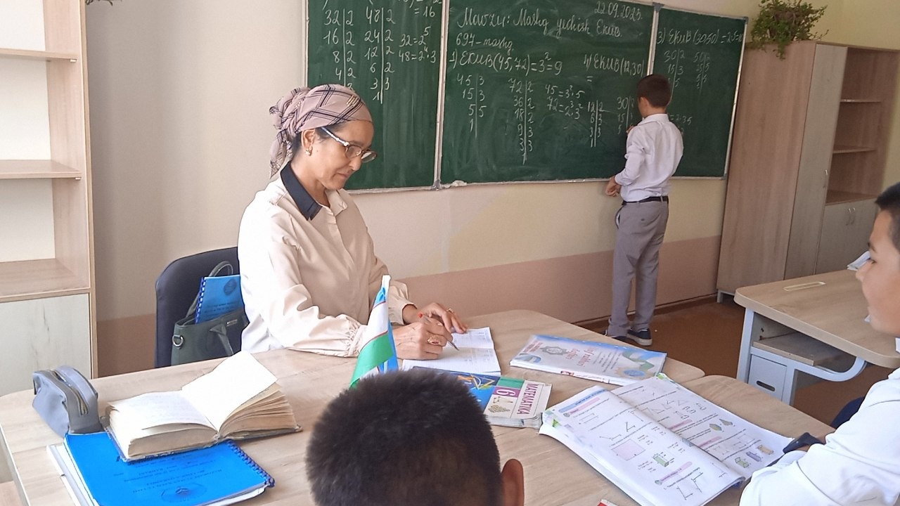 Hazorasp tuman Maktabgacha va maktab ta`limi bo`limiga qarashli 14-umumiy o`rta ta`lim maktabining matematika fani o`qituvchisi Jumanazarova Gulnora Masharipovnaning 6-b sinfda matematika darslaridan lavhalar.