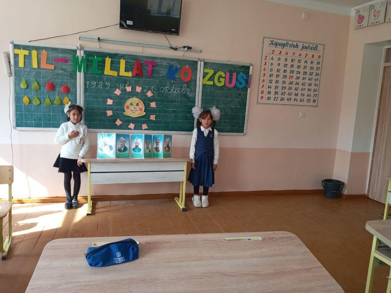 Shu munosabat bilan Hazorasp tuman Maktyabgacha va maktab ta`limi bo`limiga qarashli 14-umumiy o`rta ta`lim maktabining 1-A sinf o`quvchilari va sinf rahbari ishtirokida "Til-millat ko`zgusi" mavzusida bayram tadbiri bo‘lib o‘tdi. Unda o‘quvchilar ona tilimizning asl mohiyati va qadr-qiymati haqida she‘rlar va maqollar aytishdi.