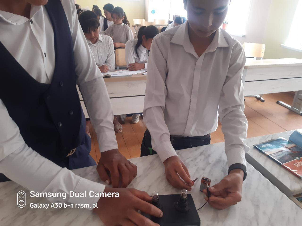Hazorasp tuman maktabgacha va maktab ta`limi bo`limiga qarashli 14-umumiy o`rta ta`lim maktabida fizika fani o`qituvchisi Axmedova Shoxistaning 6-A sinfida tabiiy fandan "Lampochkalarning ulanishi "mavzusidagi darsidan fotolavhalar