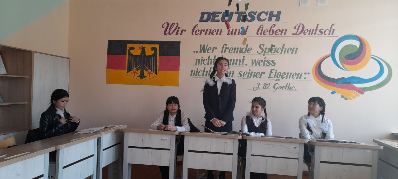 14 son maktabning nemis tili fani o'qituvchisi Abdurasulova Dilafruzning 11 -A sinfida"Wir lernen Deutsch" deb nomlangan tadbiridan lavhalar.