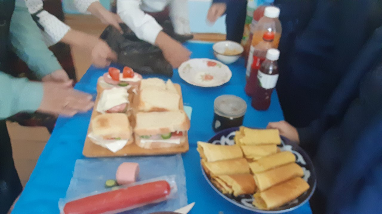 Hazorasp tuman Maktabgacha va maktab ta`limi bo`limiga qarashli 14- son maktabi 5-sinf o`quvchilarining texnologiya fanidan o`tkazilgan "Buterbrod tayyorlash hamda Issiq va yaxna ichimliklar" mavzusidagi dars jarayonidan lavhalar