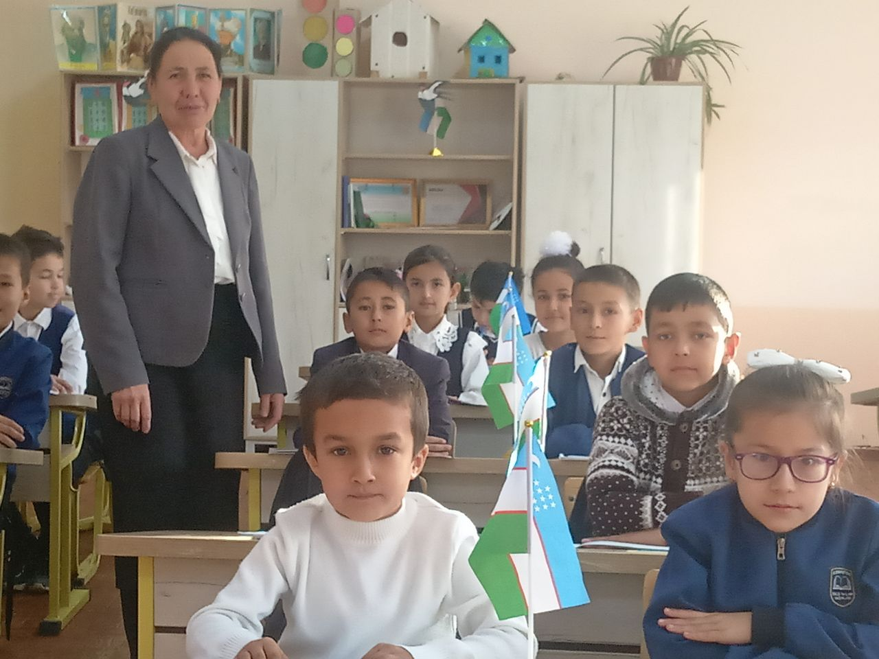 Hazorasp tuman maktabgacha va maktab ta`limi bo`limiga qarashli 14-umumiy o`rta ta`lim maktabining boshlang`ich sin o`qituvchisi Ro`ziboyeva Barno Beknazarovnaning "Bayrog`imiz-faxrimiz"mavzusidagi ochiq darsidan lavhalar.