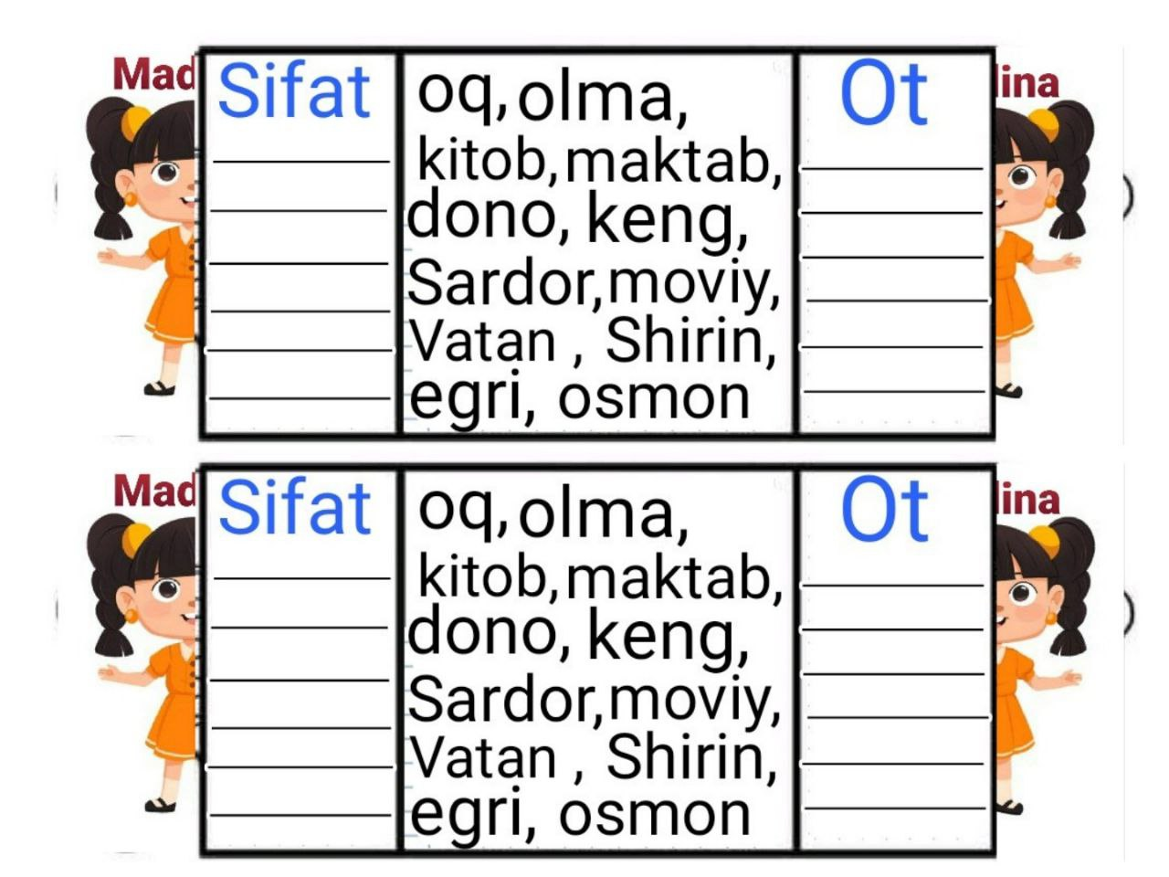 • Xorazm viloyati, Hazorasp tumani Muxomon qishlog'i, Navro'z mahallasi, Ta'lim ko'chasi 55-uy