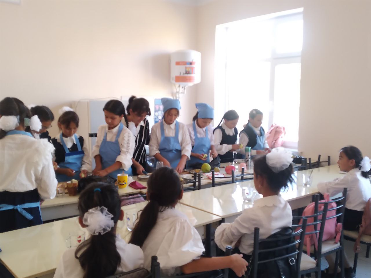 sinf o`quvchi qizlari va texnologiya fani o`qituvchisi Bekmurotova Saodatjon uztozlari hamkorlikda o`z qollari bilan maktab oshxonasida ichimlik