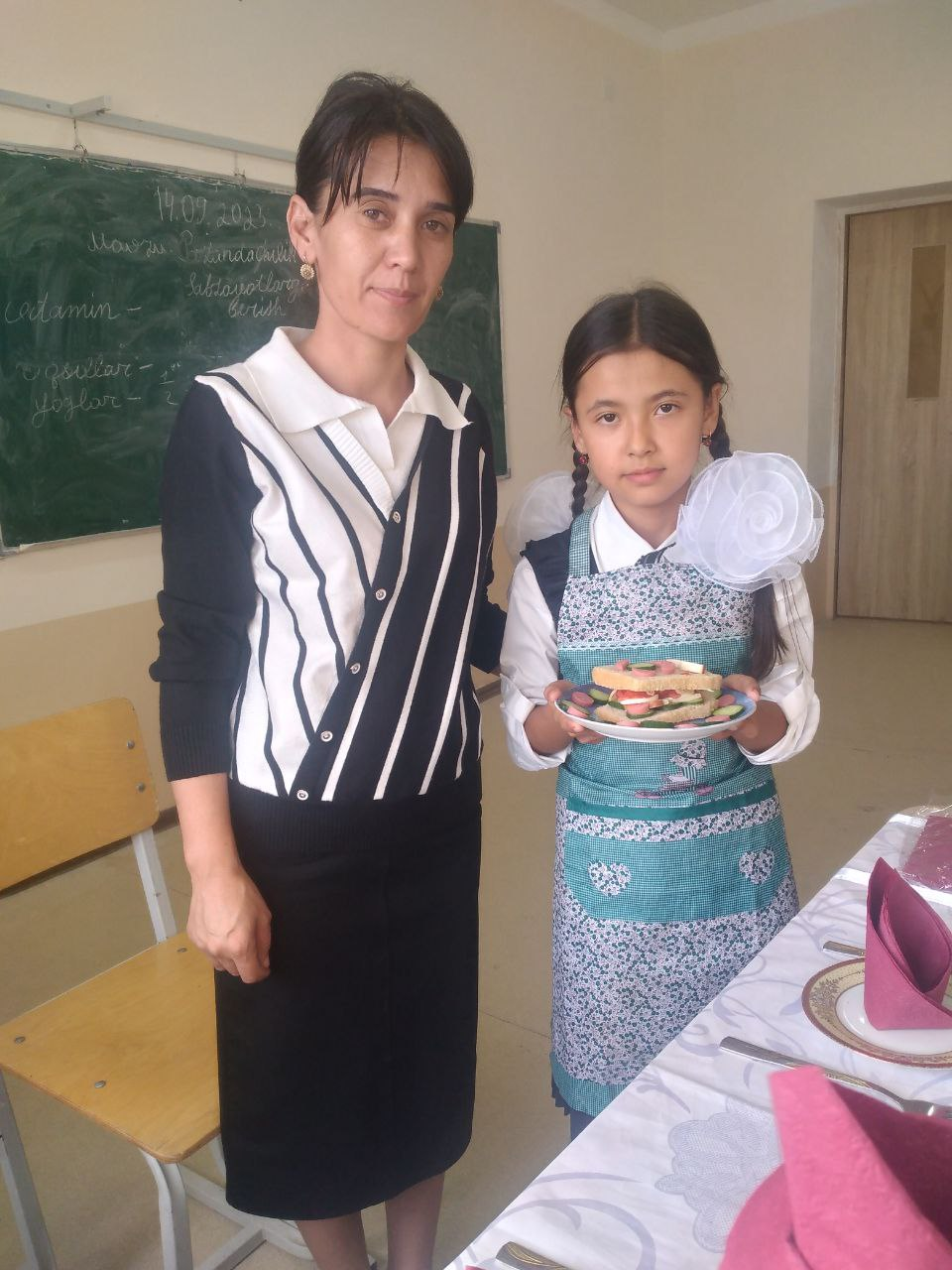 Hazorasp tuman Maktabgacha va maktab ta`limi bo`limiga qarashli 14- son maktabi 5-sinf o`quvchilarining texnologiya fanidan o`tkazilgan "Buterbrod tayyorlash hamda Issiq va yaxna ichimliklar" mavzusidagi dars jarayonidan lavhalar