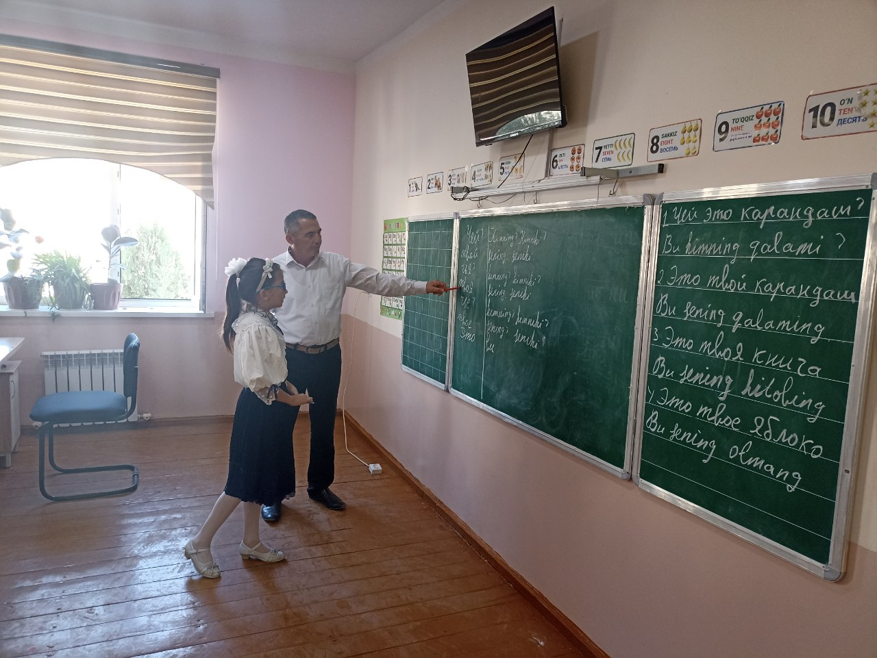Hazorasp tuman Maktabgacha va maktab ta`limi bo`limiga qarashli 14-umumiy o`rta ta`lim maktabining rus tili fani o`qituvchisi Qutlimurotov Murodbek Karimovichning Твой,Твоя,Твоё dars jarayonidan lavhalar.