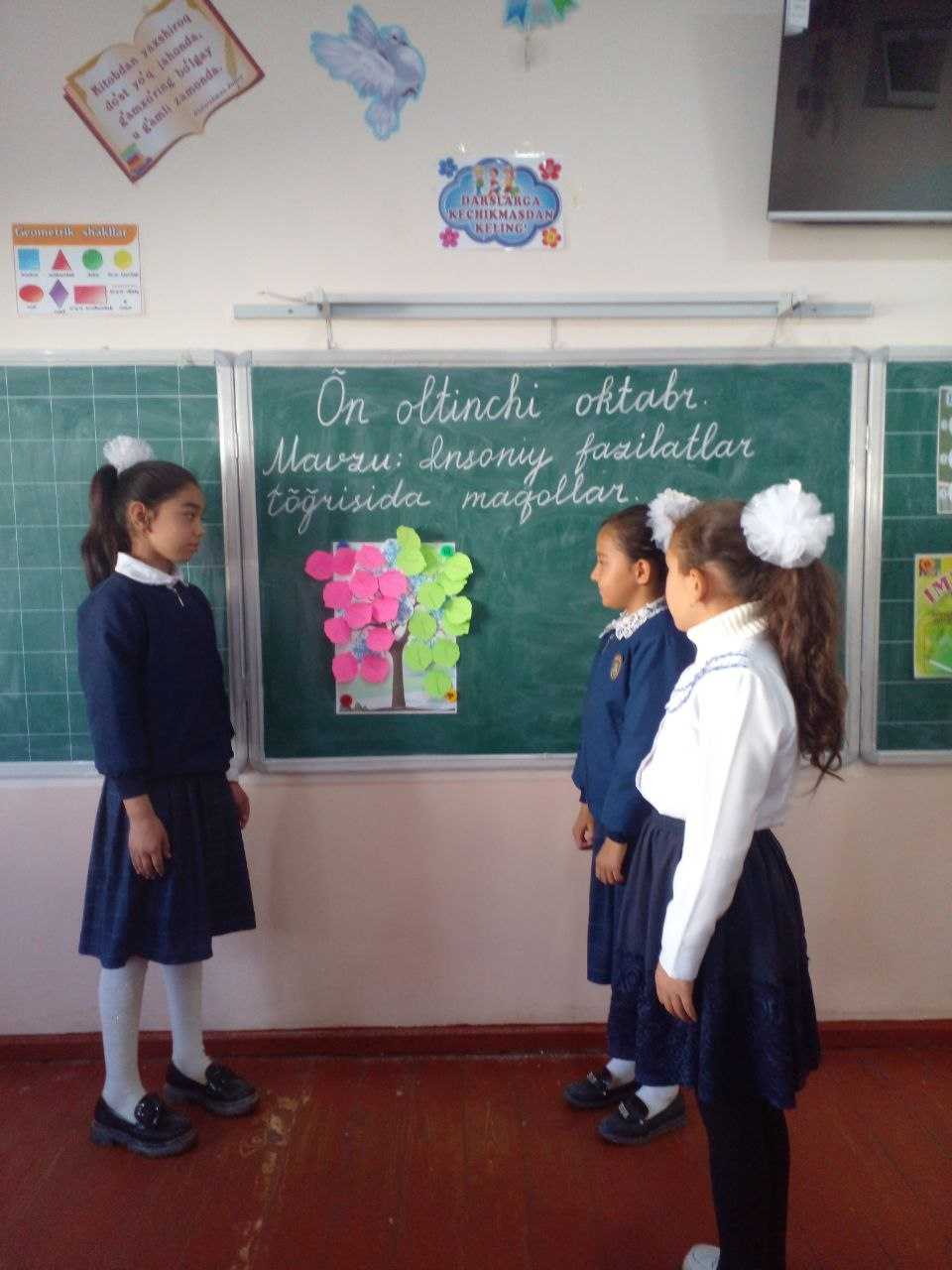 14-son maktabning 3-E sinfida Insoniy fazilatlar tóģrisida maqollar mavzusida ótkazilgan ochiq darsidan lavhalar
