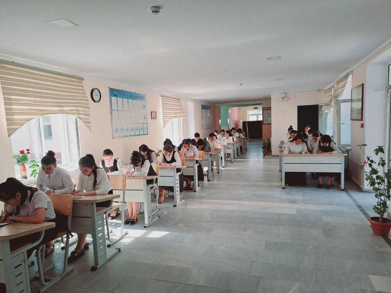 Hazorasp tuman maktabgacha va maktab ta`limi bo`limiga qarashli 14-umumiy o`rta ta`lim maktabida 2023-yil 26-may kuni maktabning 9-sinf o`quvchilariga ona tili va adabiyot fanlaridan yakuniy imtihon jarayonlari bo`lib o`tdi.Imtihonni maktabning ona tili va adabiyot fani o`qituvchilari B.Matnazarov hamda D.Qalandarovalar nazorat qildilar.